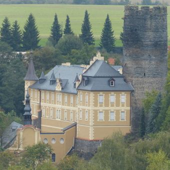 Le château a connu des rénovations majeures en 1870 par l'architecte Adam Haberzettl, intégrant des éléments gothiques à sa base romane.