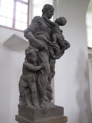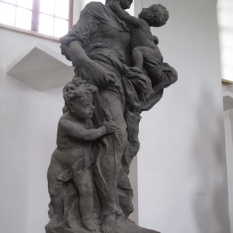 Statue of the allegory of Pile on the terrace of the hospital in Kuks