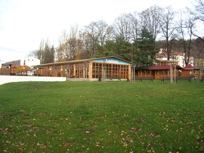 Le site a commencé au début du 20e siècle comme un simple lieu de baignade sur la rive du fleuve pour donner accès à l'eau aux habitants de Prague. Au fil du temps, il s'est transformé en centre de loisirs polyvalent avec des installations sportives supplémentaires et des espaces d'événements.