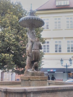 Le marchand Jakub Wimmer a commandé au sculpteur František Xaver Lederer la création de cette fontaine en 1797, initialement placée dans la Rue Nationale.