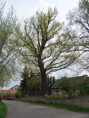 Památný dub proti domu Pánkova 17 v Nedvězí u Říčan
