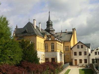 Městská spořitelna est un bâtiment bancaire Art Nouveau d'un étage situé à un coin de Jilemnice, avec des fenêtres en saillie et une tour distinctive. La façade affiche des peintures décoratives créées par les artistes Jan Lev et Vladimír Hraba.