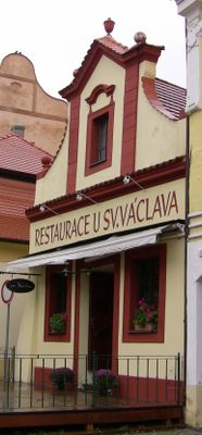 Socha dívky na průčelí domu náměstí Míru 7/6 v Mělníku