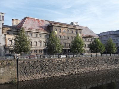 L'architecte Bedřich Bendelmayer a conçu cet établissement de bains municipaux, qui a fonctionné comme centre de loisirs jusqu'à sa fermeture en avril 2019.