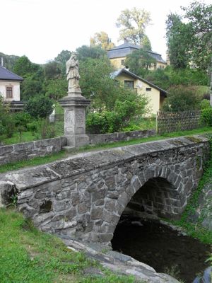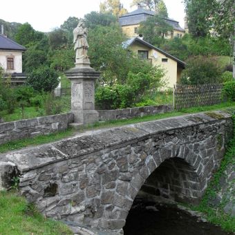 Socha svatého Jana Nepomuckého na mostě přes potok v Kryštofově Údolí