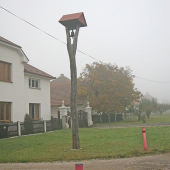 Boží muka a zvonička naproti obecnímu úřadu v Újezdu u Sezemic