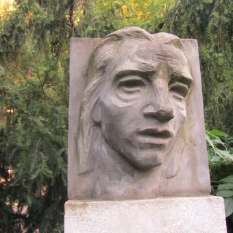 Pomník Pabla Nerudy v parku mezi ulicemi Donátova a Vrchlického