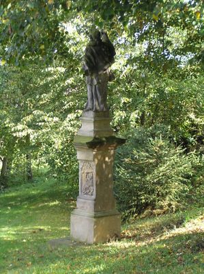 La statue représente Saint Jean Népomucène en habits ecclésiastiques traditionnels, positionnée tel un gardien près du Château de Sychrov.