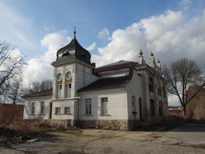 La Salle des Échantillons est un bâtiment Art Nouveau à Rybáře près de Karlovy Vary conçu comme espace d'exposition de produits en porcelaine. Son intérieur présente les lignes courbes fluides et les motifs naturels caractéristiques du style, avec des éléments décorés avec un soin particulier.