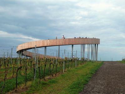 Stezka nad vinohrady est une tour d'observation en spirale avec une rampe inclinée qui s'élève d'environ 7,5 mètres au-dessus du sol. La structure suit un tracé circulaire incomplet et offre des vues sur les vignobles environnants et les montagnes lointaines de Moravie du Sud.