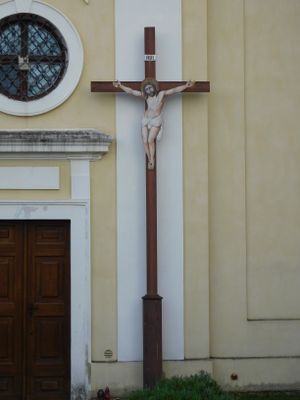 Cross in front of the Church of the Exaltation of the Holy Cross in Koloděje