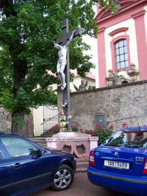 Kříž v Uhříněvsi před kostelem Všech svatých, kříž na území Uhříněvsi