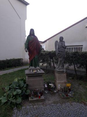 Socha u Vinohradského hřbitova v Praze, statue in Vinohrady, Czech Republic