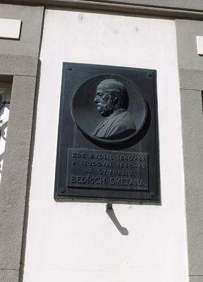 Pamětní deska Bedřicha Smetany na zdi kláštera dominikánek v Plzni, pamětní deska v obci Plzeň, okres Plzeň-město