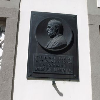 Pamětní deska Bedřicha Smetany na zdi kláštera dominikánek v Plzni