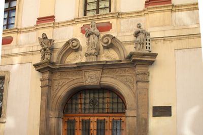 Sochy nad portálem kláštera dominikánek z Bezručovy ulice v Plzni, statue in Plzeň, Czech Republic