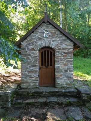 Kaple Panny Marie Pomocné u štol est une chapelle en pierre située dans les montagnes de la Foret de Boheme a environ 785 metres d'altitude. La structure a ete reconstruite en pierre en 2011 et se trouve pres de la zone ou l'exploitation aurifere s'est autrefois deroulee, accessible par des sentiers de randonnee marques.
