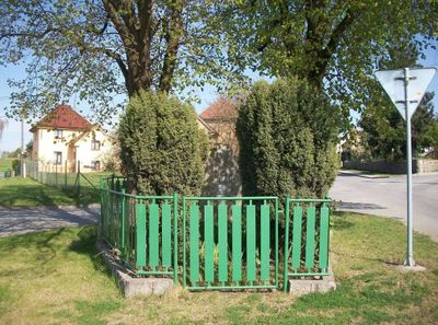 Kříž ve vsi Štěnovicích u zámecké zdi