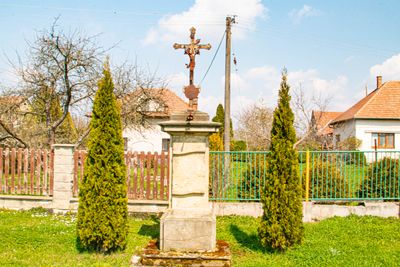 Kříž v Horní Rovni poblíž školy, pamětní kříž v obci Dolní Roveň, okres Pardubice