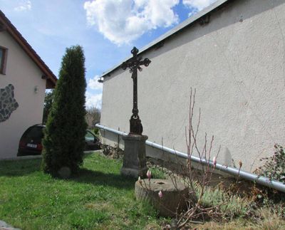 Kříž v zahradě u čp.21 na východním okraji Pístova, pamětní kříž v obci Jihlava, okres Jihlava