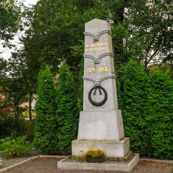 Kříž v Jeníkovicích u kostela svatého Petra a Pavla