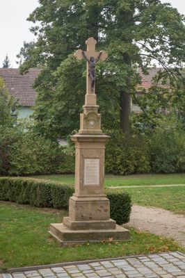 Kříž u kostela sv. Mikuláše, pamětní kříž v obci Miroslavské Knínice, okres Znojmo