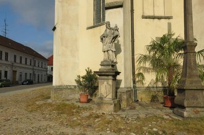Socha svatého Václava vpravo za kostelem svatého Jiljí v Třeboni