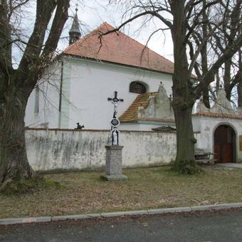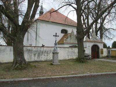Kříž ve Křtěnově u kostela, pamětní kříž v obci Temelín, okres České Budějovice