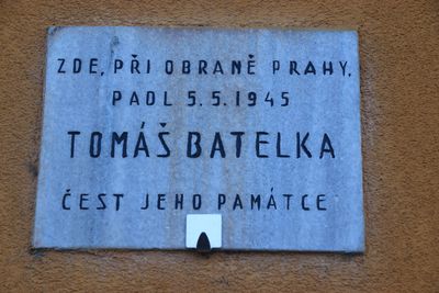 Pamětní deska Tomáše Batelky na domě Jihlavská 822/76 v Praze, pamětní deska v Praze