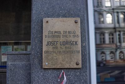 Pamětění deska Josefa Voříška na Paláci Merkur v Praze, pamětní deska v Praze