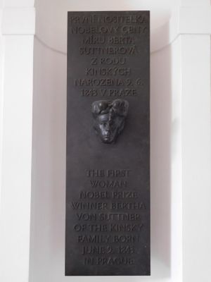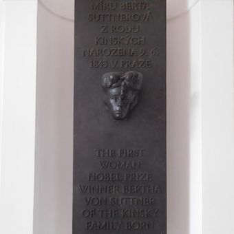 Pamětní deska Berty Suttnerové v průchodu paláce Kinských v Praze, pamětní deska v Praze