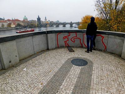 Pamětní deska Gustava Mahlera na Mánesově mostě v Praze, památná dlažba v Praze