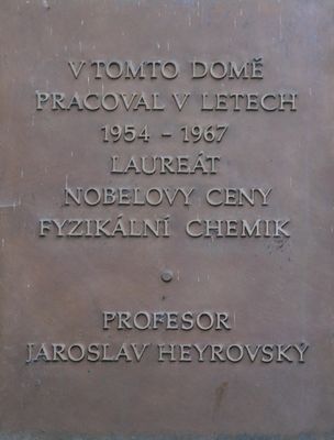 Jaroslav Heyrovský plaque in Vlašská street, plaque in Prague