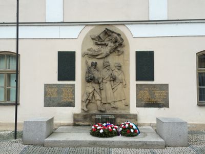 Pomník padlým na Masarykově náměstí v Říčanech, tugu peringatan di Republik Ceko
