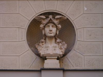Bust of Mercurius at Pařížská 9, statue in Prague