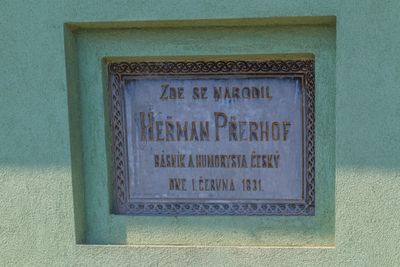 Pamětní deska, Pamětní deska básníka Heřmana Přerhofa na jeho rodném domě čp. 14 ve Zborovské ulici v Žiželicích