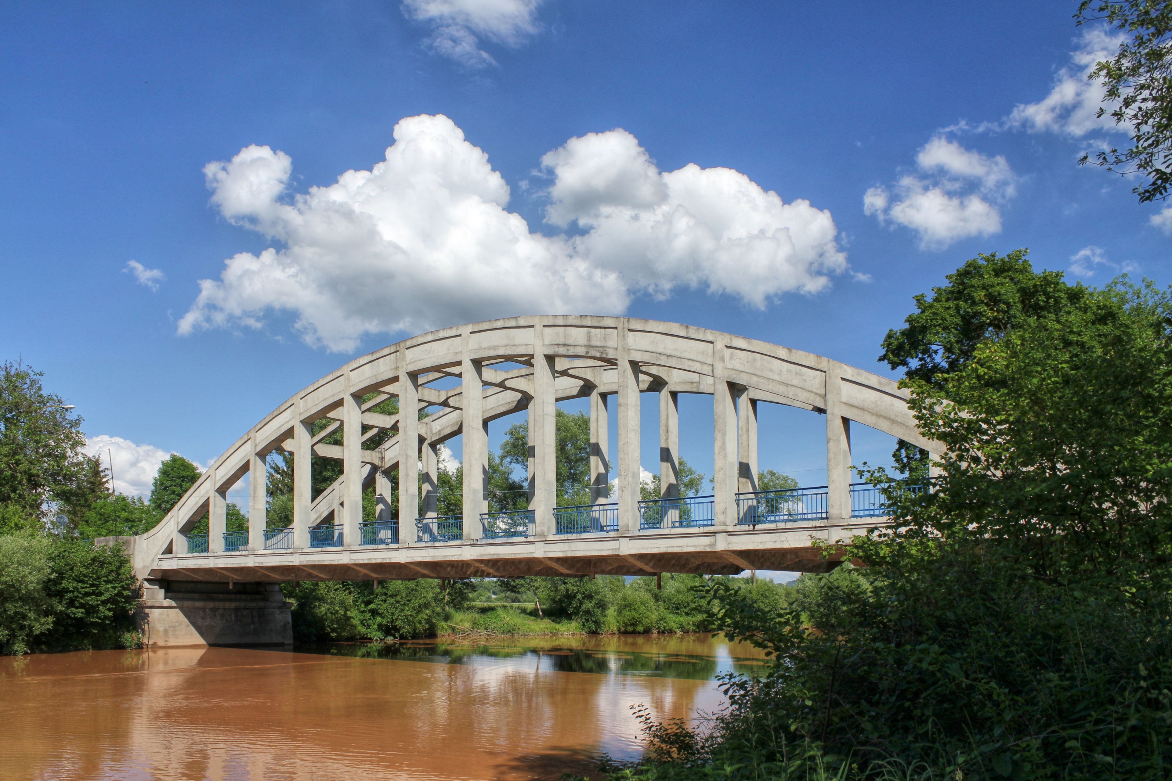 Svijany Road Bridge, older one of the road bridges across the Jizera in Svijany, Czechia