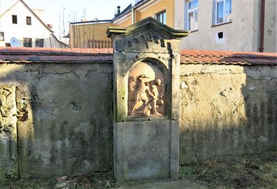 Pomník nejasného účelu v areálu kostela Nalezení svatého Kříže ve Frýdlantu