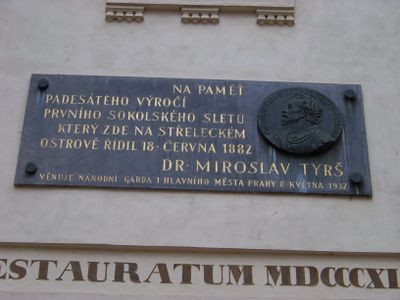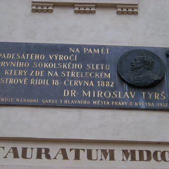 Pamětní deska padesátého výročí prvního sokolského sletu na Střeleckém ostrově, pamětní deska v Praze