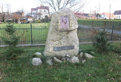 Pomník malíře Wenzela Franze Jägera naproti škole v Raspenavě, pomník v okrese Liberec