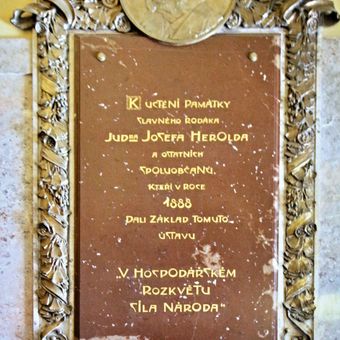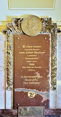 Pamětní deska Josefa Herolda ve vchodu do spořitelny ve Vršovicích