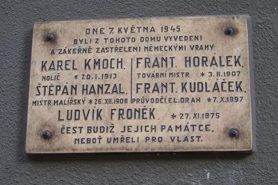 Pamětní deska obětem zavražděným za Květnového povstání na domě Koněvova 142/1603 na Žižkově