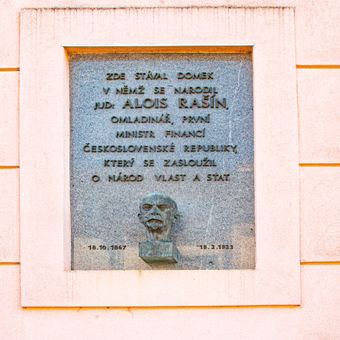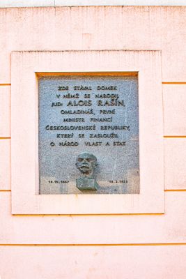 Pamětní deska, pamětní deska na místě, kde v Nechanicích stával rodný dům JUDr. Aloise Rašína