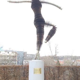 Kovové kinetické plastiky v atriu Galerie Harfa ve Vysočanech