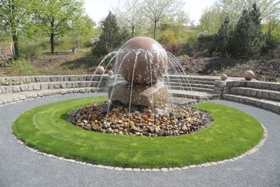 Fontána před areálem Pražských služeb, fontána v parčíku v ulici Pod šancemi
