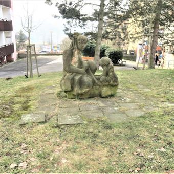 Socha Matka a dítě v ulici Vnější ve Vratislavicích nad Nisou, statue in Liberec, Czech Republic