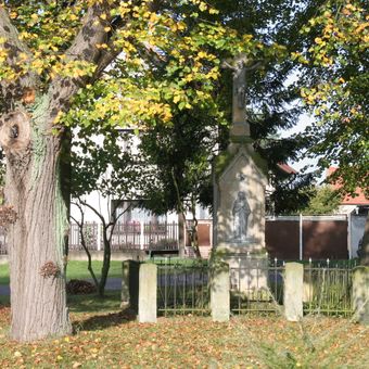 Kamenný kříž na návsi v Loukonosech, pamětní kříž v obci Žiželice v okrese Kolín