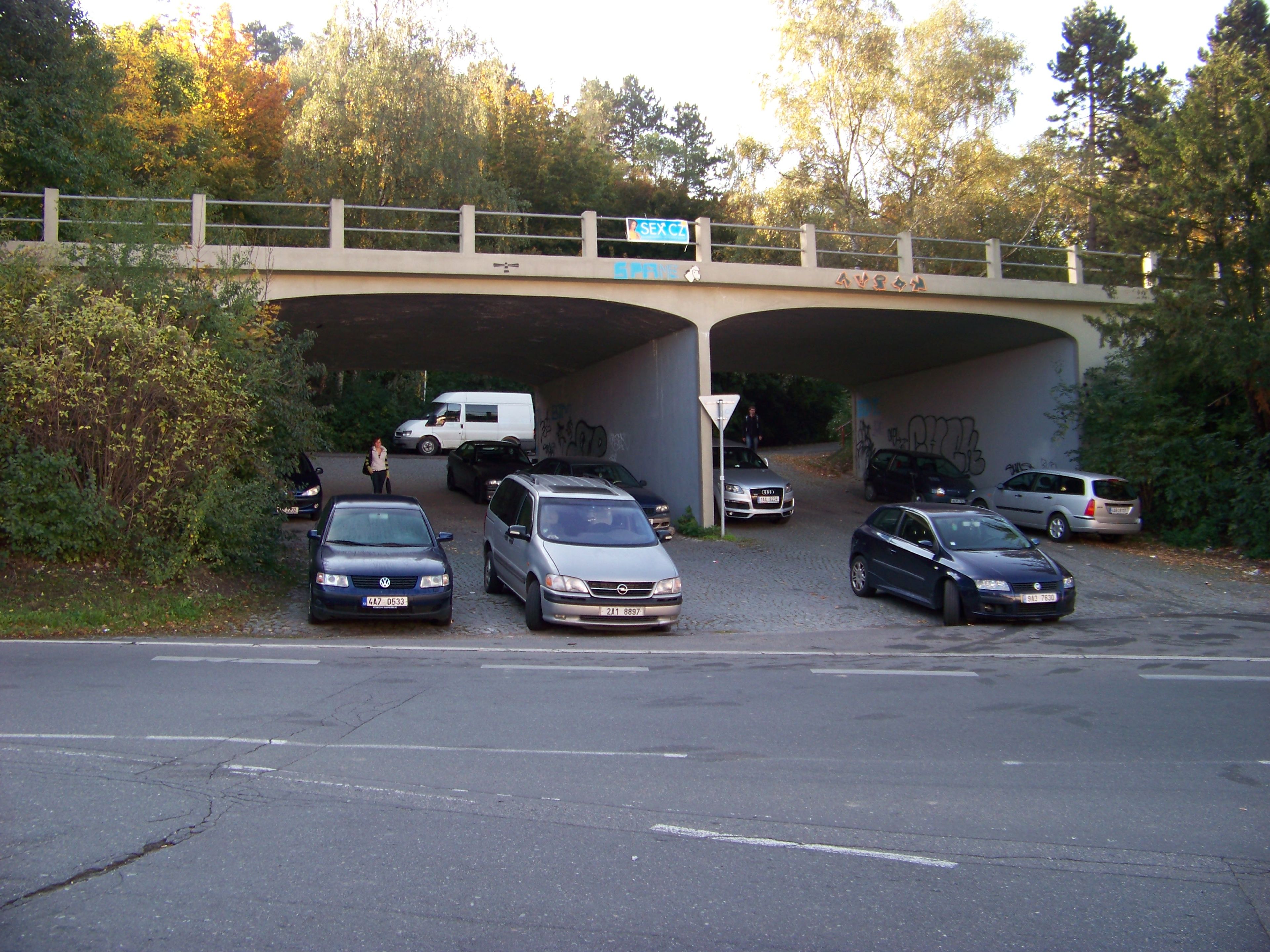 Bridge of Diskařská street over Chodecká street, most v Praze-Břevnově u zastávky Malovanka
