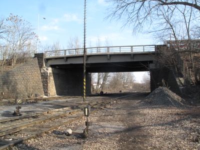 Bridge of K Červenému dvoru street, most v Praze-Žižkově u hranice Strašnic přes zaniklou železniční trať k nákladovému nádraží Žižkov