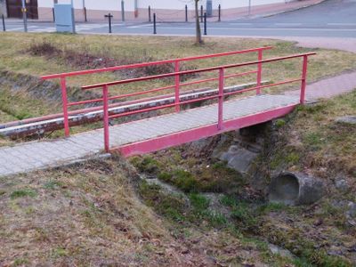 Footbridge over Vrutice in front of elementary school in Velká Chuchle